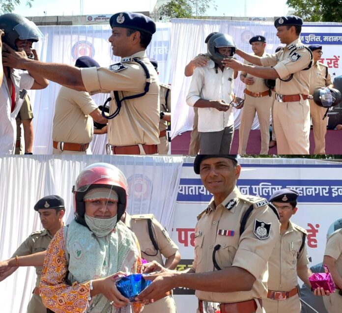 पुलिस आयुक्त श्री संतोष कुमार सिंह के दिशा-निर्देशन में आयोजित इस कार्यक्रम में एक अनोखा नजारा देखने को मिला। ट्रैफिक पुलिस ने उन वाहन चालकों को रोका जिनके पास दस्तावेज तो पूरे थे लेकिन हेलमेट नदारद था।