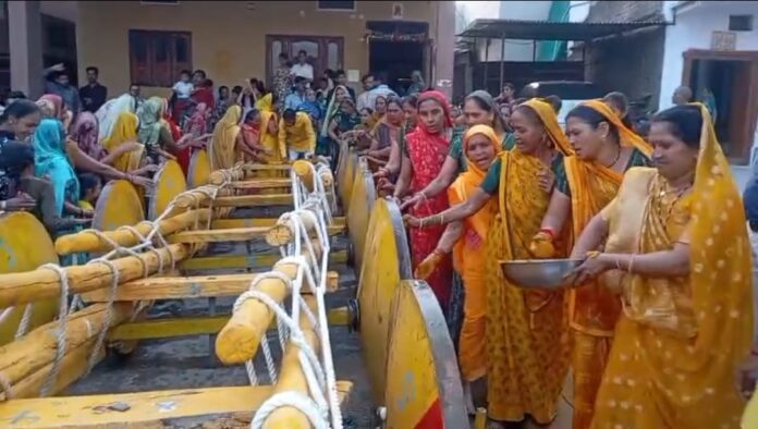 1). हल्दी की रस्म: गाड़ा खींचने वाले श्रीराम यादव को विशेष रूप से हल्दी लगाई गई।