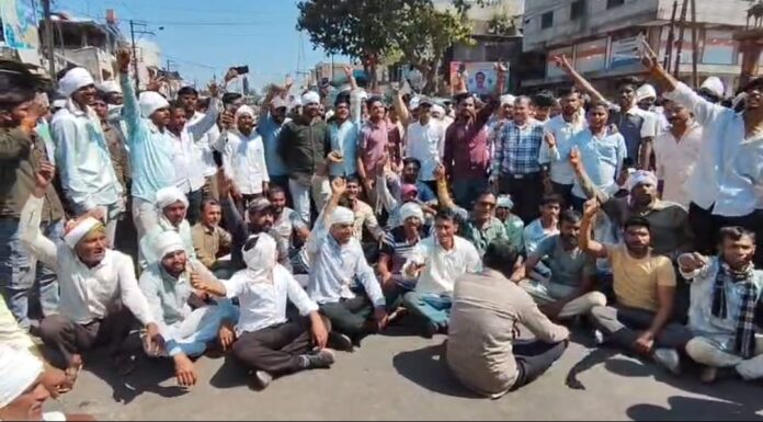 खरगोन। (संभाग पोस्ट) शहर की आनंद नगर कपास मंडी में सोमवार को उस समय हड़कंप मच गया, जब चना फसल के दामों में अचानक आई गिरावट से किसानों का गुस्सा फूट पड़ा। हफ्ते के पहले ही दिन भाव में 700 से 1000 रुपये प्रति क्विंटल की कमी देख आक्रोशित किसानों ने न केवल नीलामी रुकवाई, बल्कि मंडी गेट पर ताला जड़कर बावड़ी बस स्टॉप पर जोरदार प्रदर्शन और चक्काजाम कर दिया।