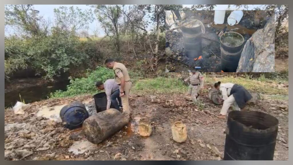 1: लहान किया गया नष्ट: टीम ने दबिश के दौरान लगभग 20,500 लीटर कच्चा लहान बरामद किया।