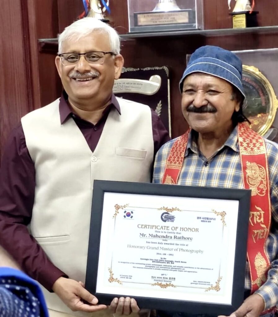 देवी अहिल्या विश्वविद्यालय के पूर्व वरिष्ठ कर्मचारी साथी, एवं प्रसिद्ध फोटोग्राफर, श्री महेंद्र राठौर जिन्हें मध्य प्रदेश सरकार द्वारा कई बार पुरस्कार प्रदान किया जा चुका है इसी कड़ी में श्री महेंद्र राठौर को साउथ कोरिया द्वारा अंतर्राष्ट्रीय फोटोग्राफी में विशेष योगदान हेतु अंतरराष्ट्रीय पुरस्कार से सम्मानित किया गया।