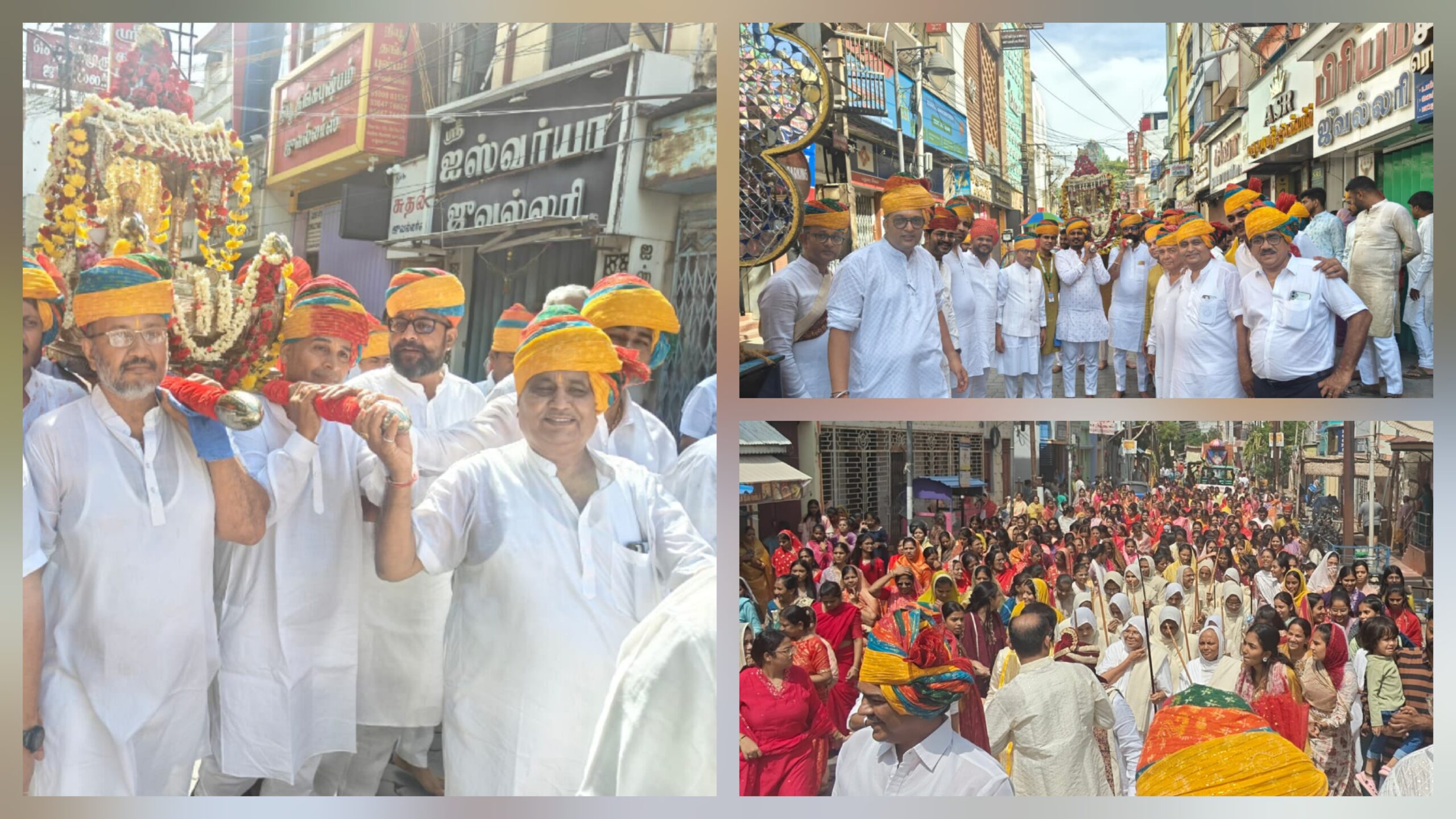 मदुराई तमिलनाडु – पर्वाधिराज पर्युषण पर्व के समापन के उपलक्ष्य में रविवार को मदुरै सकल जैन संघ के तत्वाधान में भगवान महावीर स्वामी की रथयात्रा निकाली गई। प.पु. विदुषी साध्वी श्री मणिप्रभाश्री जी म.सा आदि ठाणा 24 के पावन सानिध्य में रविवार सुबह नौ बजे श्री सांचा सुमतिनाथ मंदिर, श्री सुमतिनाथ मंदिर एवं सुमतिनाथ नया मंदिर होते हुए रथयात्रा निकली। श्री संघ प्रवक्ता दिनेश सालेचा ने बताया कि रथयात्रा में महावीर स्वामी की तस्वीर और रथ व पालकी में भगवान की प्रतिमा एवं 14 स्वप्ननाजी झांकी सजाई गई। रथयात्रा के आगे समाज के बच्चे जिनशासन पताका लिए हुए चल रहे थे। शोभायात्रा में महिलाएं सिर पर कलश लेकर चल रहीं थीं। संगीत मंडली भजनों की प्रस्तुति देती चल रही थी। । रथयात्रा दौरान श्रद्धालुओ ने त्रिशला नंदन वीर की जय बोलो महावीर की नारे गूंजयमान थे। जैन बैंड की मधुर धुन पर युवा नृत्य और जयकारे लगाते हुए । श्रावक और श्राविकाएं रथ यात्रा की शोभा बढ़ा रहे थे। रथयात्रा के दौरान रास्ते में जगह जगह पर श्रद्धालुओं ने परिवारजन के साथ अक्षत व श्रीफल से भगवान को बधाया गया। रथयात्रा शहर के मुख्य मार्गो से होते हुए नया मंदिर प्रांगण में आकर सम्पन्न हुई। रथयात्रा में शहर के जैन समाज के सभी संस्थाओं के युवक मंडल, महिला मंडल, बालिका मंडल, संगीत मंडल, जैन बैंड, एवं आदिनाथ संस्कार वाटिका के बच्चों सहित विभिन्न संस्थाओं के पदाधिकारियों ने भाग लिया। चातुर्मास लाभार्थी परिवार की ओर से सकल जैन समाज का सामूहिक में स्वामीवात्सल्य रखा गया । आयोजित कार्यक्रम के समापन पर जैन समाज के सभी संस्थाओं के पदाधिकारीयो ने लाभार्थी परिवार का तिलक, माला, शॉल व साफा पहनाकर सम्मान किया एवं परिवार की अनुमोदना की
